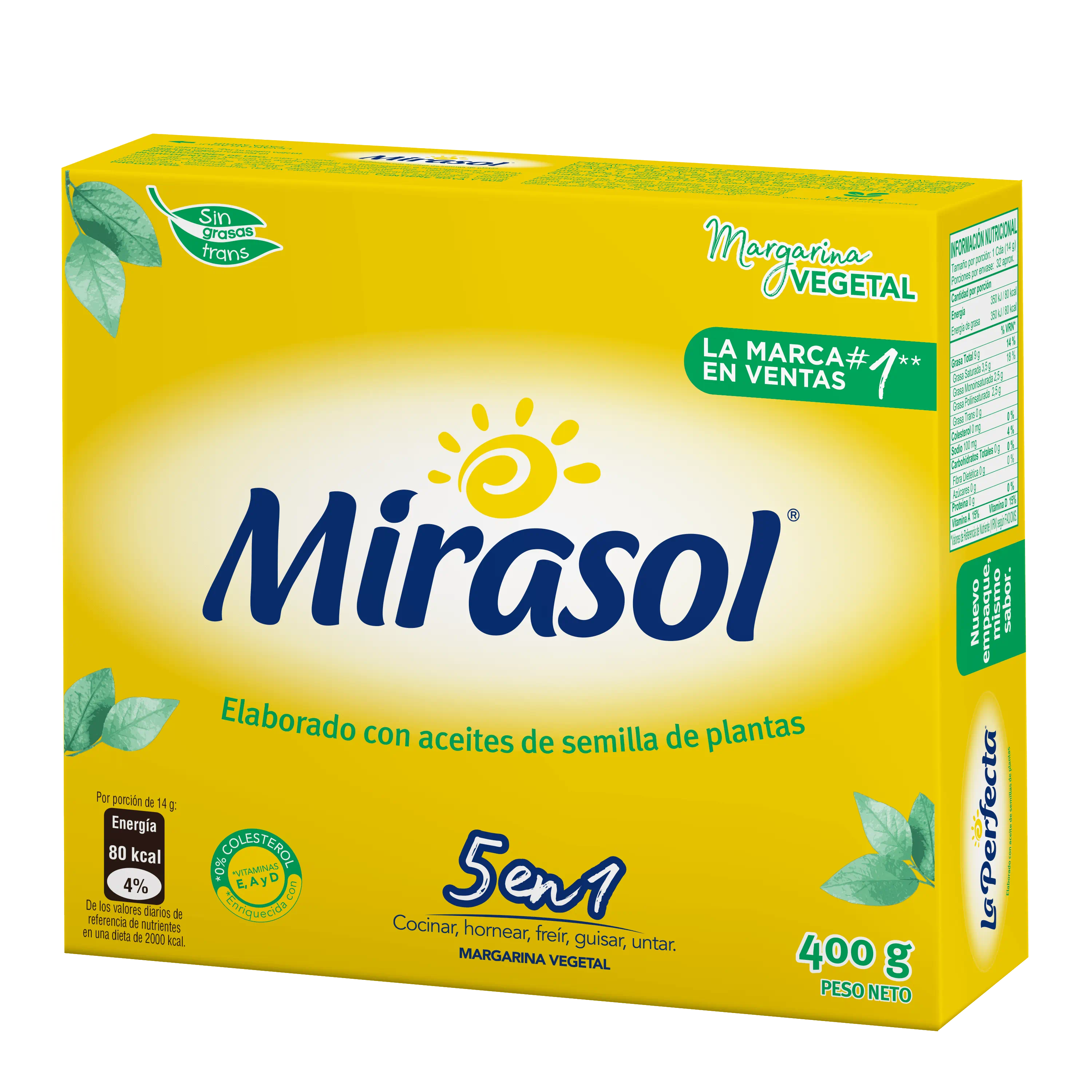 Mezcla de aceite vegetal sin hidrogenar (palma, soya), agua, sal yodada, emulsificantes (lecitina de soya, mono y diglicéridos de ácidos grasos, poliglicerol ésteres de ácidos grasos), Preservante (benzoato de sodio), saborizante natural e idéntico al natural (mantequilla), antioxidante (TBHQ), acidulante (ácido cítrico), secuestrante (EDTA), vitaminas A y D, colorante natural (bixina, cúrcuma).